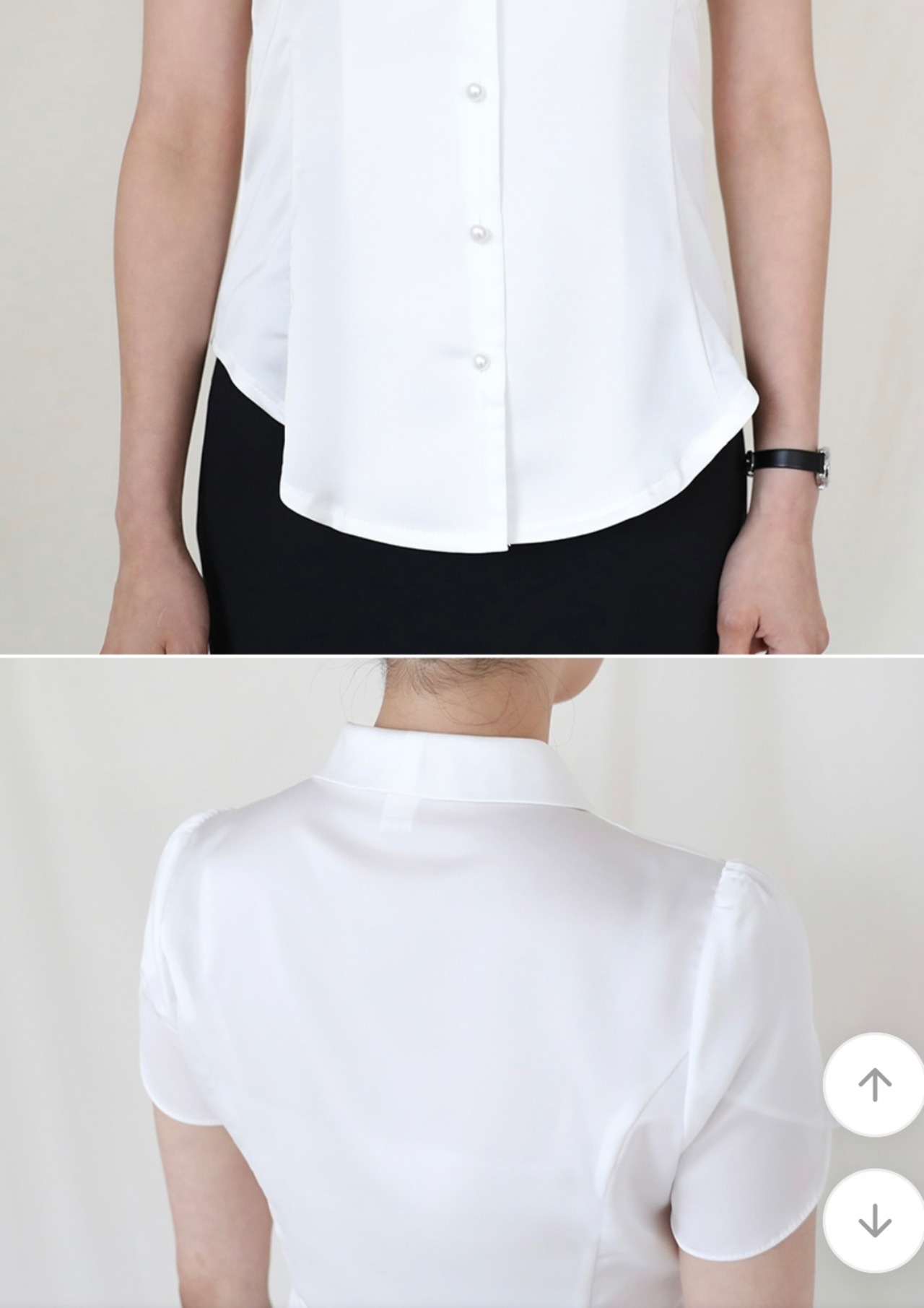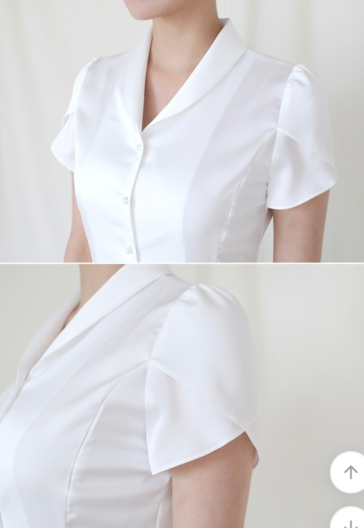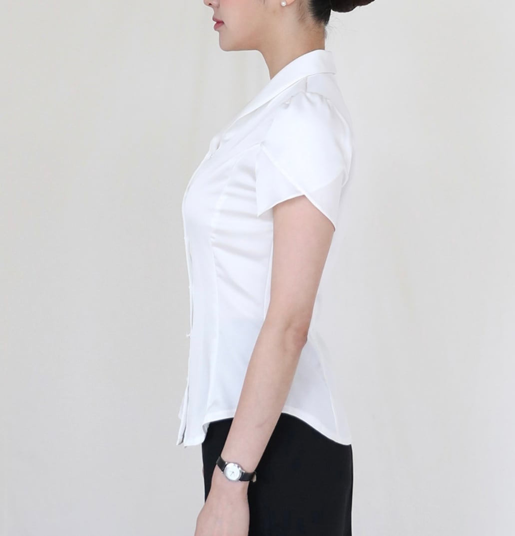 サテンタッチ 韓国CA面接用半袖ブラウス(ホワイト)